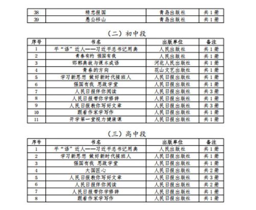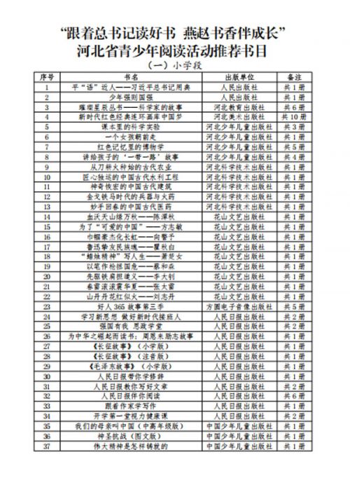 “跟着总书记读好书 燕赵书香伴成长”河北省青少年阅读活动推荐书目。